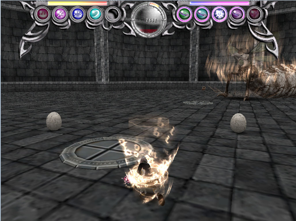 手前にある卵を吹き飛ばし技で吹っ飛ばして女王に当てると割れる